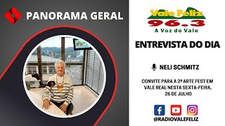 Nesta manhã de quinta-feira (25), recebemos em nosso estúdio a professora Neli Schmitz, que integra a Casa do Artesão, grupo de artesanato Arte Vale, situado em Vale Real. A professora fez um convite para o evento que irá ocorrer nesta sexta-feira, dia 26 de julho, em Vale Real, na Casa do Artesão. A casa estará aberta o dia todo para visitação.